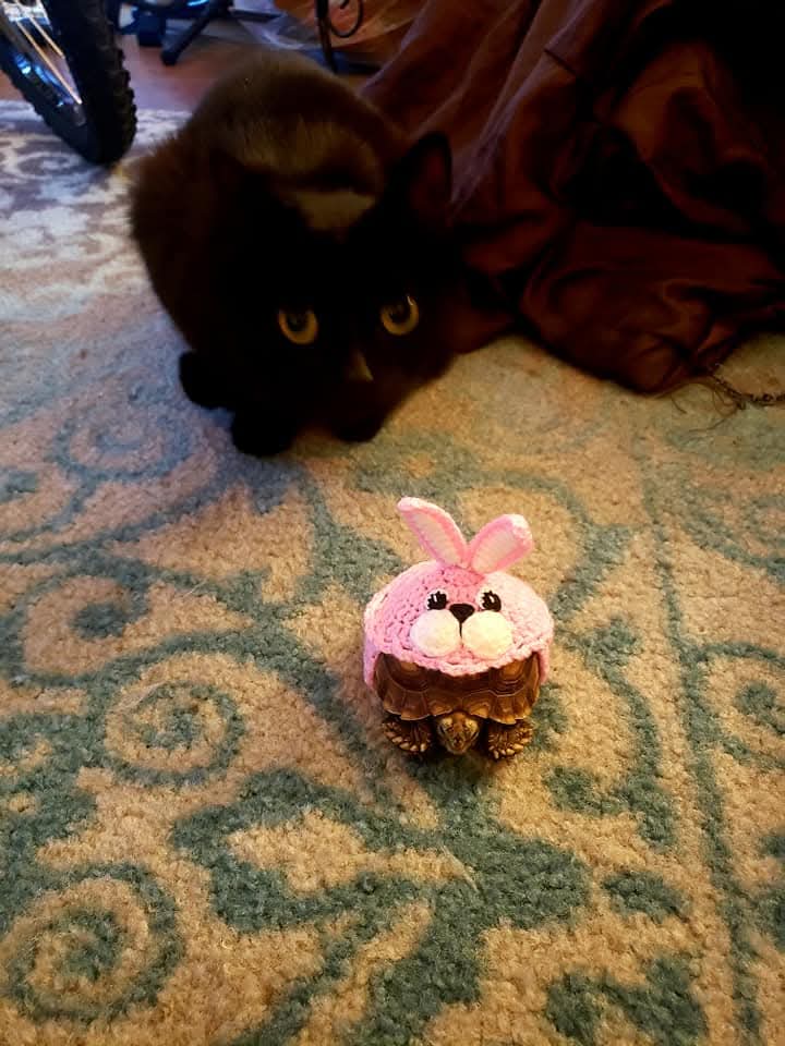 She pulled out this funny little sweaterâsoft, cozy, and covered in bunnies and pastel colors. Before I knew it, I was dressed up like an Easter parade float! At first I wasnât so sure about it (tortoises donât exactly wear clothes in the wild, ya know?), but mom kept saying how âadorableâ I looked and snapping pictures. I have to admit⌠I kinda rocked that sweater. I mean, who else can pull off a festive look and be the fastest slowpoke in the yard?